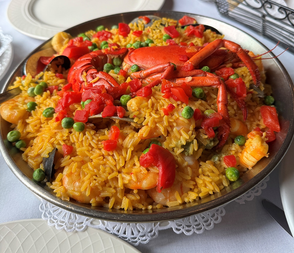 You feel the influence in both the menu and the service style. Galicia is coastal, known for shellfish and seafood-driven cooking. That is the backbone of Don Pepe. Paellas, shellfish casseroles, shrimp in garlic sauce, and lobster in several forms.